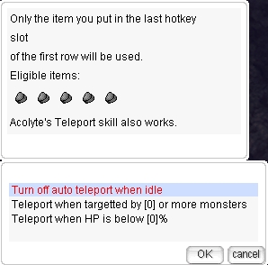 Teleport when targeted by [0] or more monsters: Set the number of monsters that, when attacking your character, will trigger an automatic teleport to a different location. When your character is targeted by more than the specified number of monsters, it will teleport to a new location.