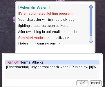 For Magician users using the automatic system, please turn off auto attack and have your skills set in your hotkey bar to enable your character to cast skills.