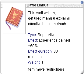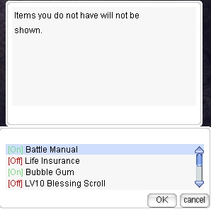 Players can configure their character to use consumable items to enhance their character or increase EXP and item drop rates automatically when the item's effect wears off. This function can be toggled on or off.
