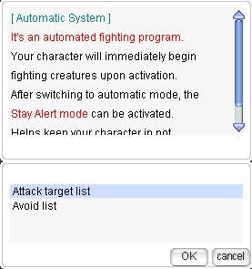 Avoid List: Select monsters for the character to avoid. The character will bypass these monsters and attack the ones on the target list instead.