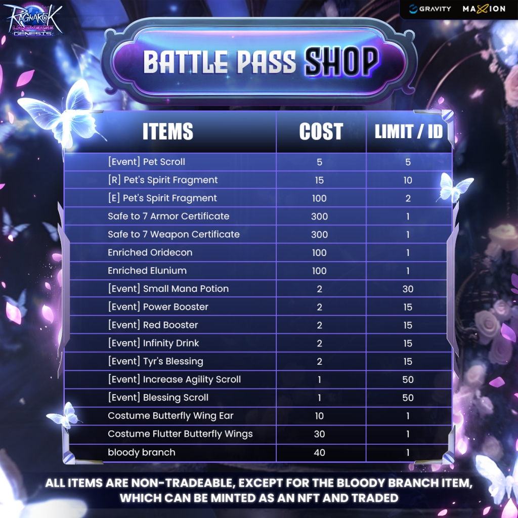 🌟 Start your journey by speaking to NPC Battlepass in Izlude (117, 220) and unlock your Battle Pass using Silvervine Fruit.