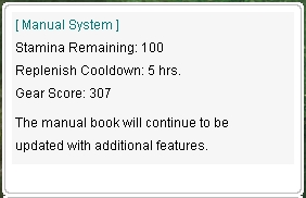 Players will have the ability to view their own gear score through a manual book. Likewise, entering a new map the message box will prompt player's current gear score.
