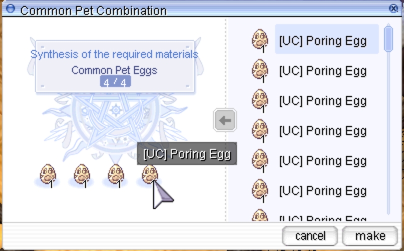 Choose 4 Pet Egg that you want to combine then press [make] to proceed.