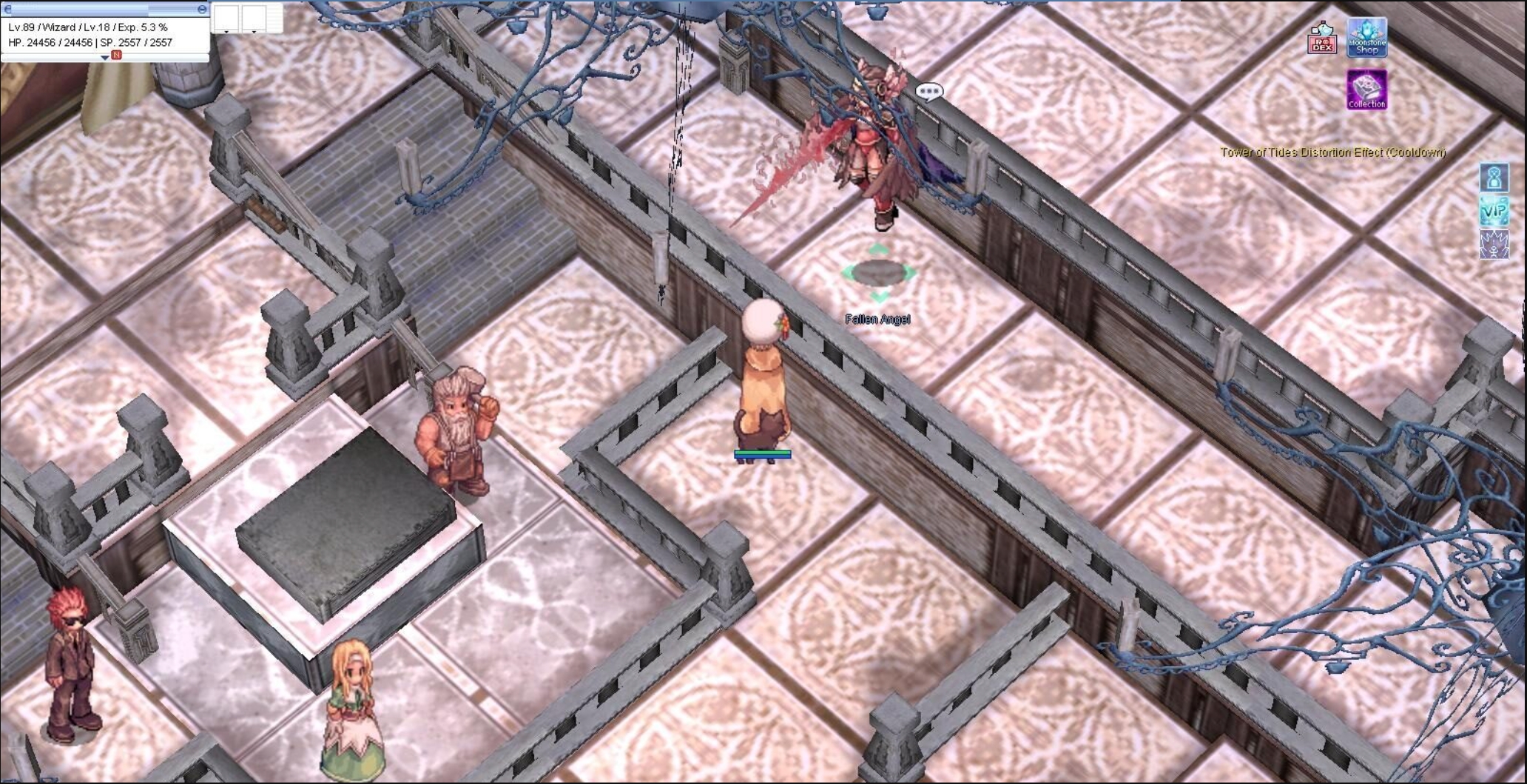 Find the NPC Fallen Angel in the Kafra Shop, located in the middle of the room.