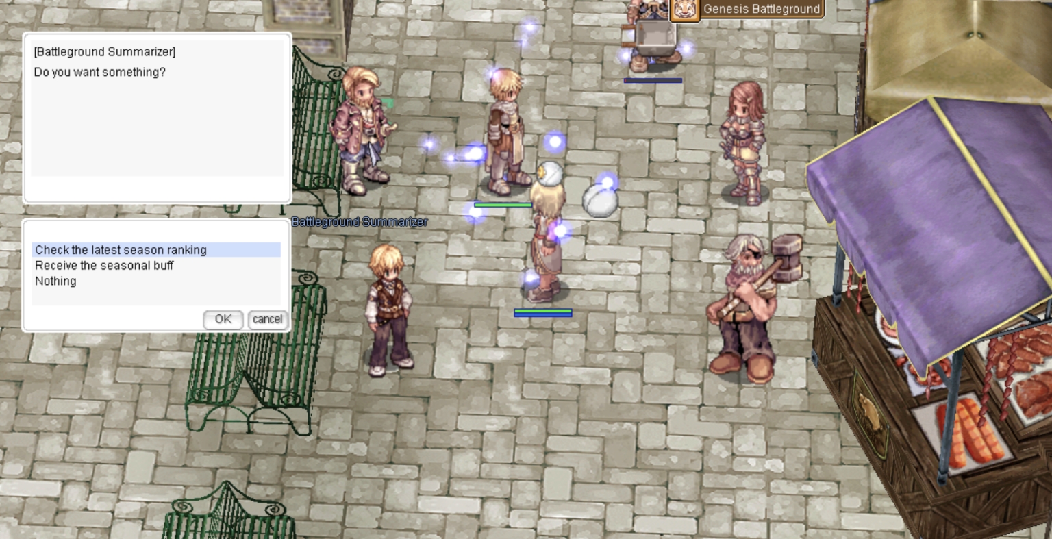Players can receive ranking buffs every day from the Battleground Summarizer NPC (Prontera 116/83).