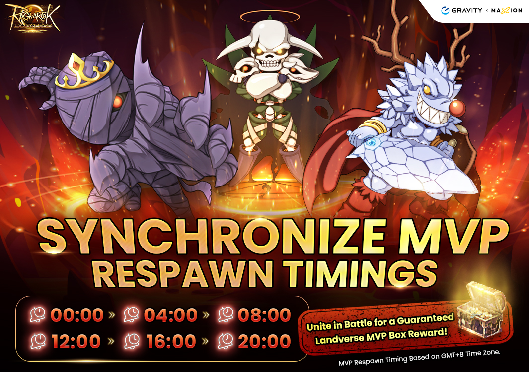 Experience the latest update in Ragnarok Landverse featuring streamlined MVPs Respawn Timings! Now, you donβt have to spend your entire day hunting for MVPs. Plan your teamβs strategy and conquer MVPs efficiently by following the new respawn schedule and guidelines: