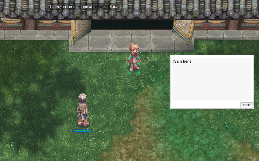 Upon entering the instance, immediately engage with the NPC known as “A girl.” She will introduce herself as Sara Irene and reveal she is waiting for her father, Doyen Irene. As your conversation progresses, Doyen will appear. Continue your interactions with them until they finish their conversation and disappear.