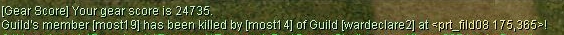 When a member of a guild is killed by a player from an enemy guild, an announcement will be made in the guild indicating the map and coordinates of the kill.