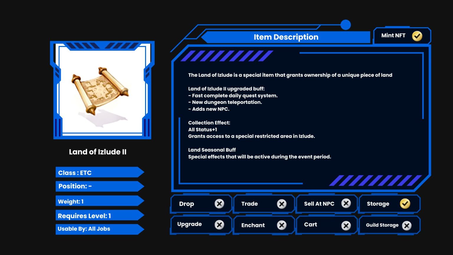 The Land of Izlude is a special item that grants ownership of a unique piece of land