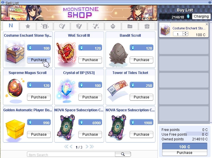 New item available in the Moonstone Shop: Costume Enchant Stone Synthesis Box (100 Moonstone)