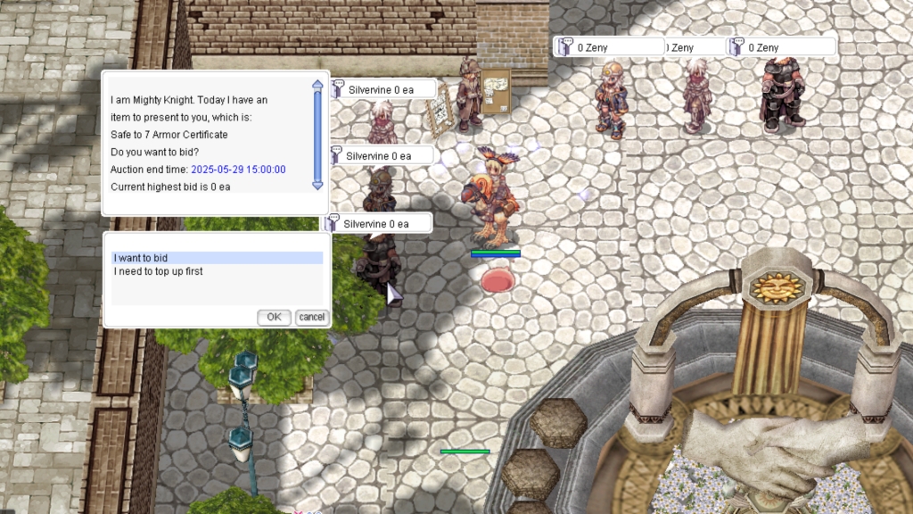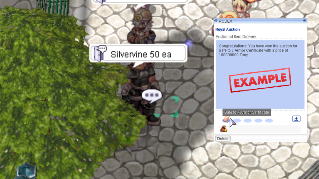 Note: Every time someone bids higher than you, you will get your Zeny or Silvervine back.