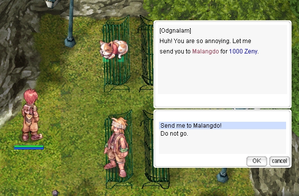 Interact with Odgnalam: Speak to Odgnalam and choose the option to travel to Malangdo Island. You will need to pay a fee of 1,000 Zeny for the journey.