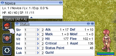 Magic Attack: The magic attack rating. It is listed as A + B in the Status Window, where A represents the Status MATK and B represents the Weapon MATK (equipped weapon and its refinement rate) and Equip MATK (equipment and buffs). The MATK as whole is affected by Element. The Status Window does not show the total MATK used for the damage calculation.