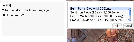 Exchange Loot Boxes for Items: Use the collected Loot Boxes along with a specified amount of Zeny to exchange for items dropped by the corresponding monster.