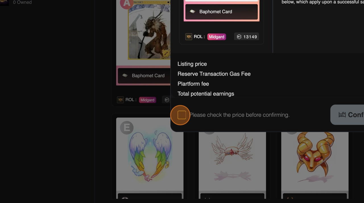 Check the checkbox to confirm that you have checked the price before proceed listing